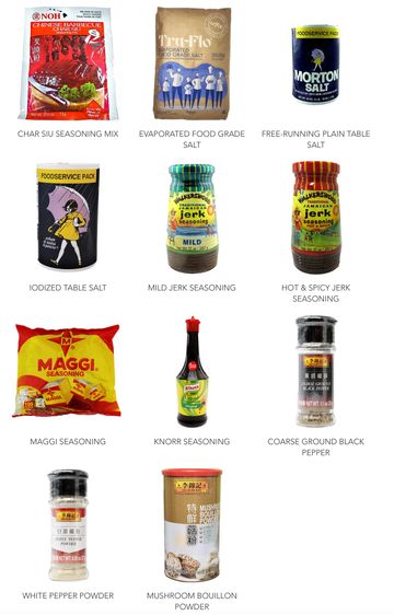 domestic & exotic spices, seasonings and sauces. Note some products may not be available.