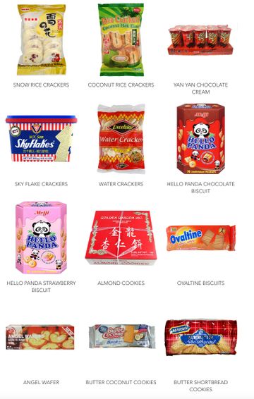 Crackers, cakes & other bakery products. Note some products may not be available.